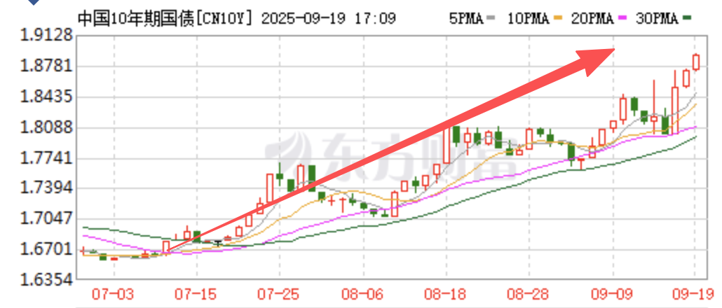 7月份,是债券市场牛熊转变之始,截至9月中旬,趋势没有逆转。以10年期国债收益率的变化来看,从7月份开始,收益率不断攀升(对应价格不断降低)。