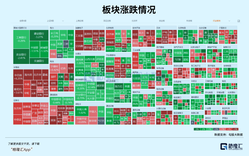 行业板块涨跌互现,贵金属、消费电子、半导体、通信服务板块涨幅居前,旅游酒店、能源金属、汽车服务、化肥行业、商业百货、酿酒行业跌幅居前。