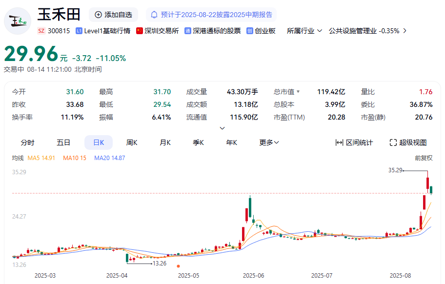 此前3个交易日大涨近60%的玉禾田盘中跌超11%,公司13日晚间在公告中指出,关注到公开媒体报道智元创新(上海)科技有限公司入股公司旗下深圳玉树智能机器人有限公司的消息。该项合作,因其对玉树智能持股比例较小,对公司经营不构成重大影响。请广大投资者注意风险。