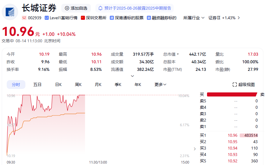 券商板块方面,截至发稿,长城证券涨停斩获两连板;中银证券一度涨超7%,华泰证券一度涨超5%。