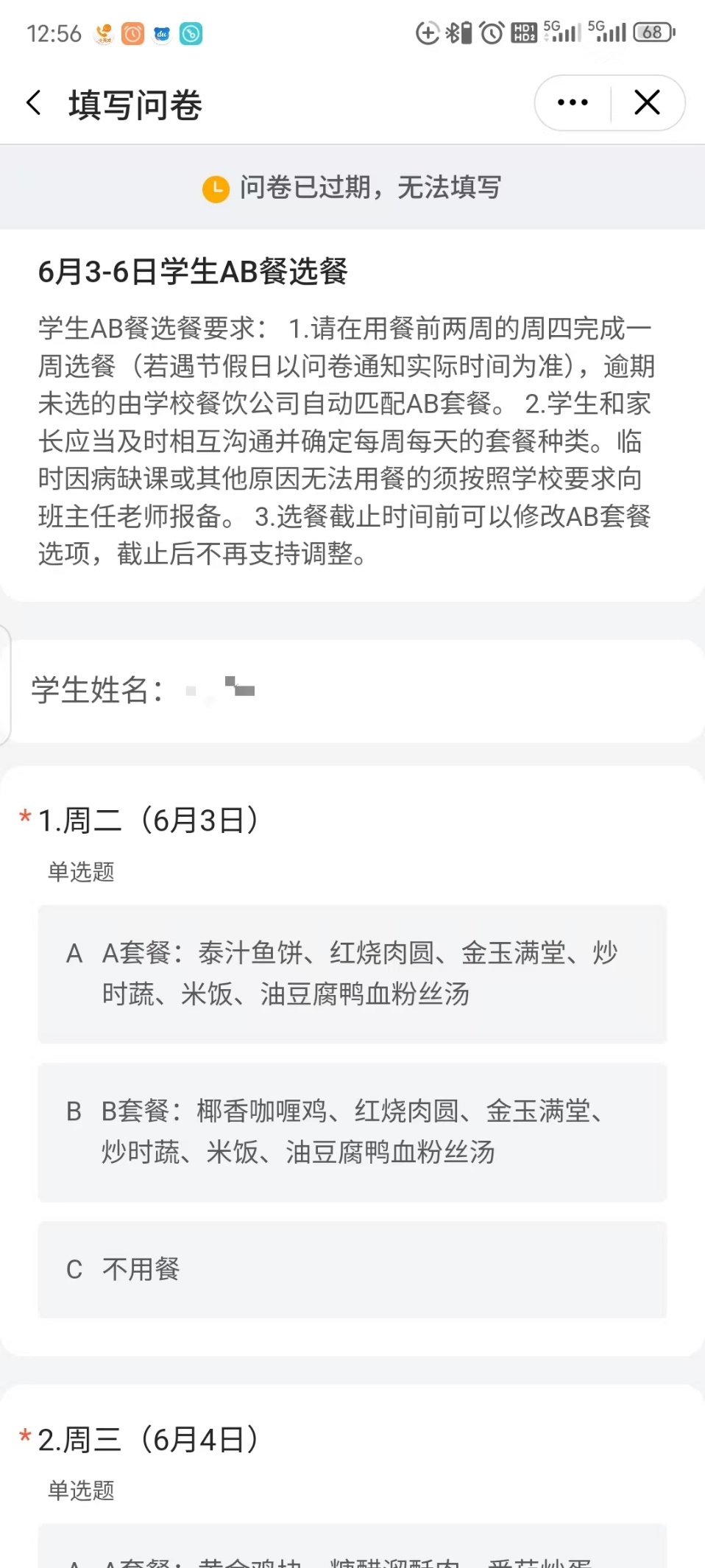 其实学校也会定期发午餐问卷调查,可这问卷时效性强得有些离谱 —— 不到 24 小时就过期,稍不留意就错过了填写时机。