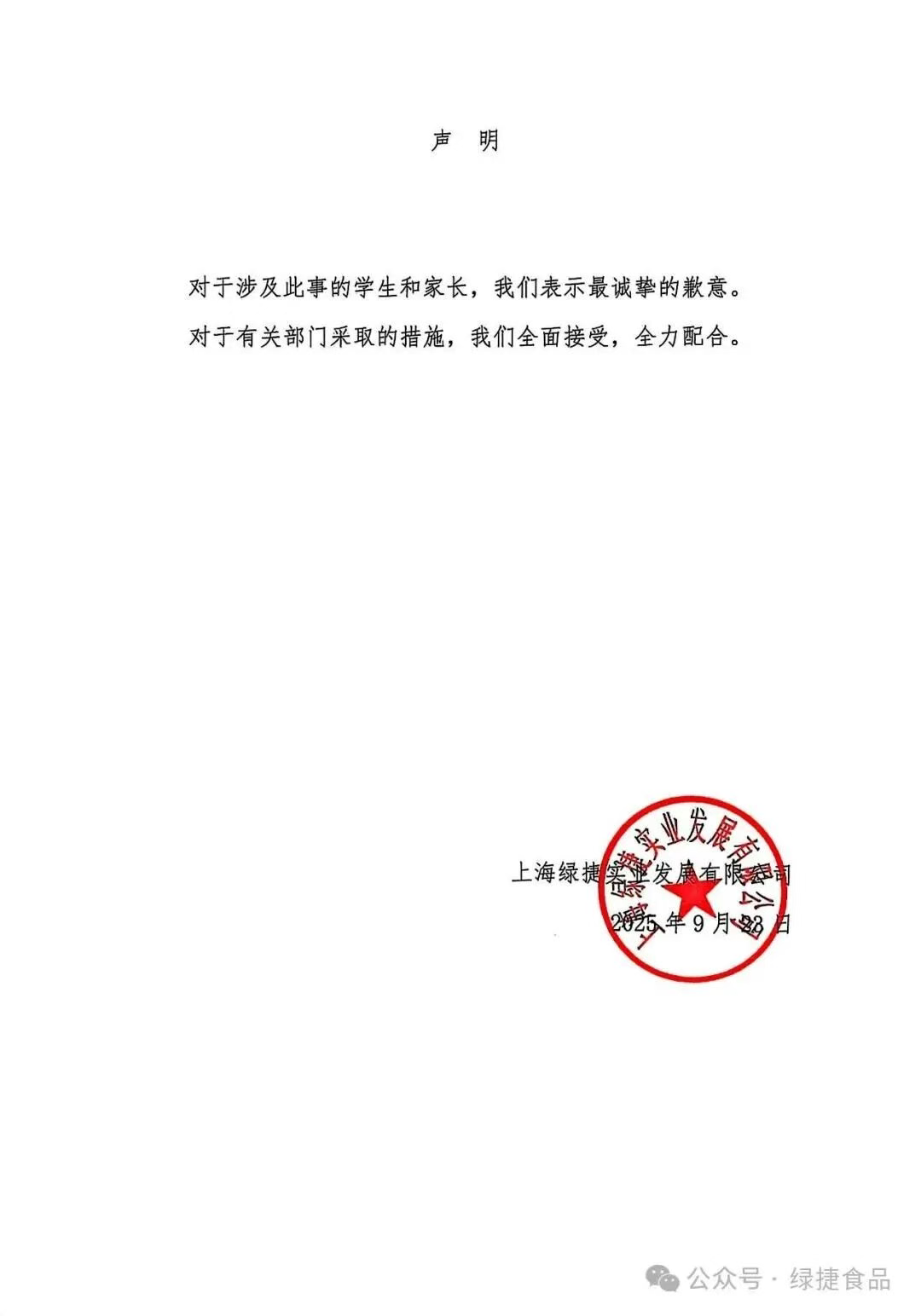 更让家长们心寒的是绿捷的 “道歉”——所谓的声明不过是一张 A4纸上的两行字,只说 “已知晓问题,将配合调查”,全程没有歉意,没有整改方案。