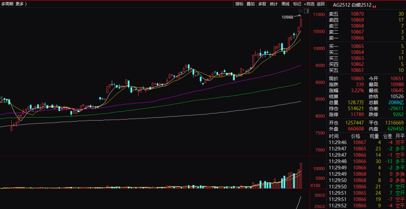 国内白银期货盘中一度大涨逾4% 再创历史新高