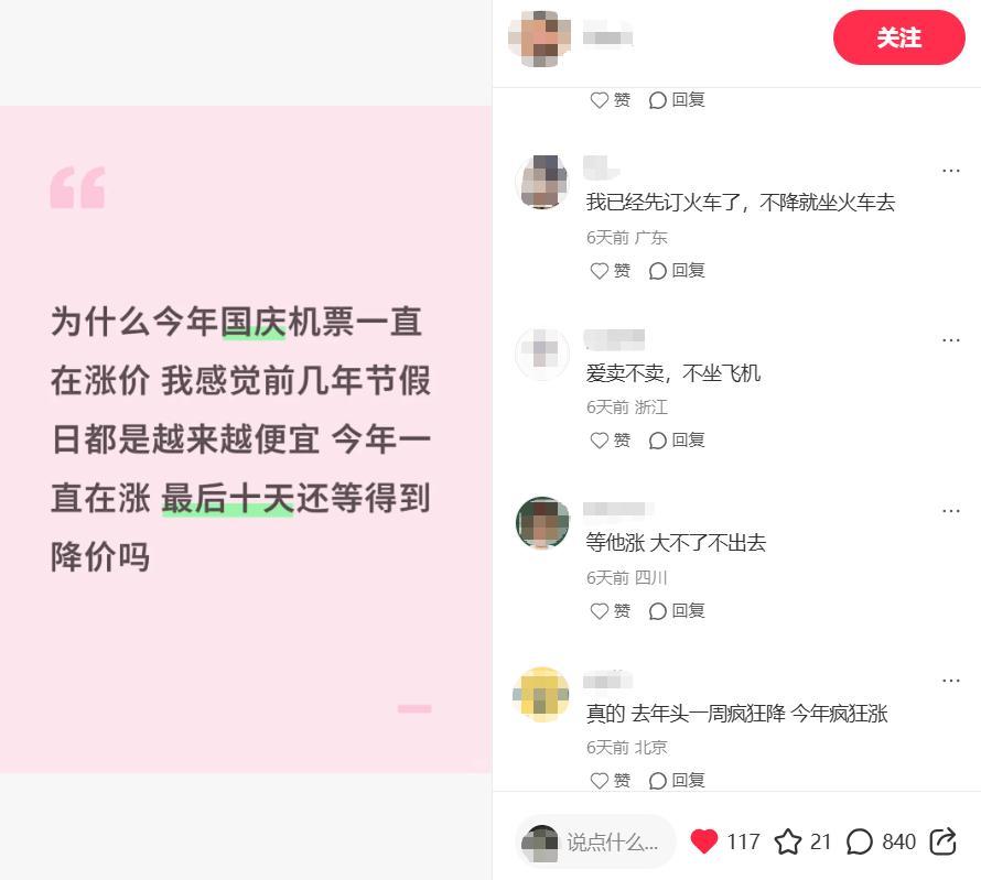社交媒体上,那些蹲点等待国庆机票降价的打工人,恐怕要失望了。