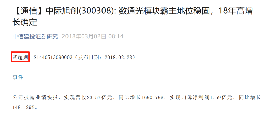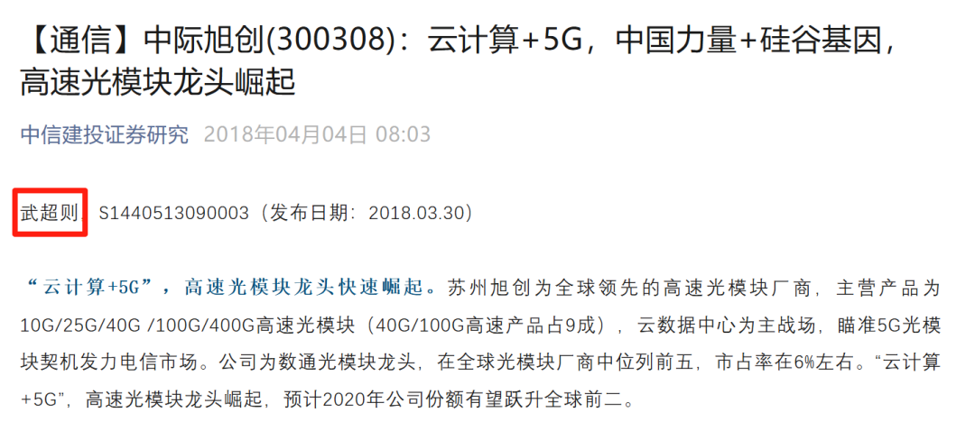 股价大涨后,最近两年覆盖中际旭创的研报,已经多达数千份,而早在2018年,武超则就已开始力推中际旭创。