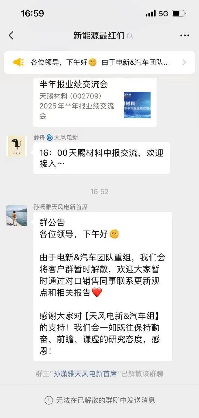 但随着事情发酵,昨天下午,这位美女首席直接“吓得”把群解散了。
