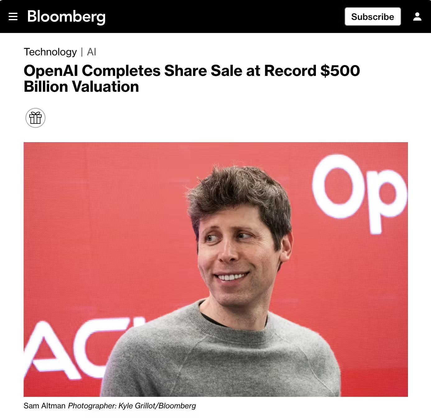 OpenAI被曝完成股份出售,估值达5000亿美元创新高