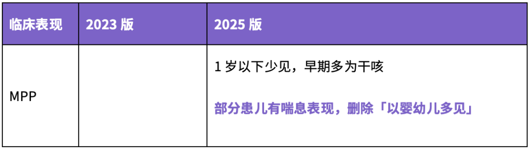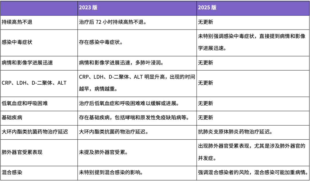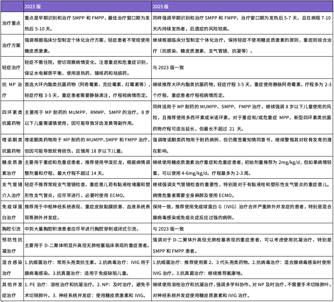2025 版:删除难治性肺炎支原体肺炎(RMPP),只定义为大环内酯类药物无反应性肺炎支原体肺炎(MUMPP)。