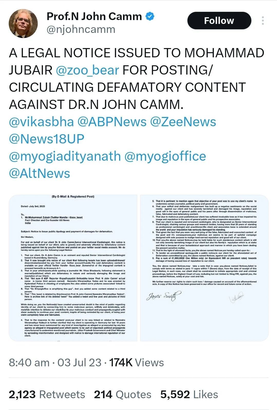 到了 2023 年,亚达夫转向社交媒体平台,自称「John Camm 博士」,频繁发动态晒合影,吹嘘自己受到印度官员接见,混进正规医院顶着专家头衔做手术。