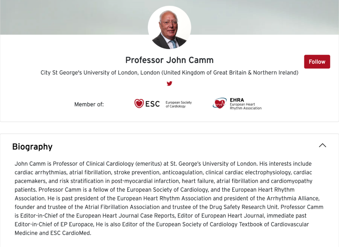 真正的 John Camm 教授无奈回应:「我大约五年前得知有人冒用我的身份,感到极其震惊。」