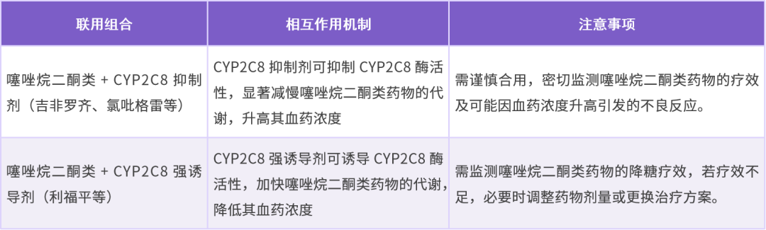 噻唑烷二酮类主要经 CYP2C8 代谢,需注意以下相互作用。