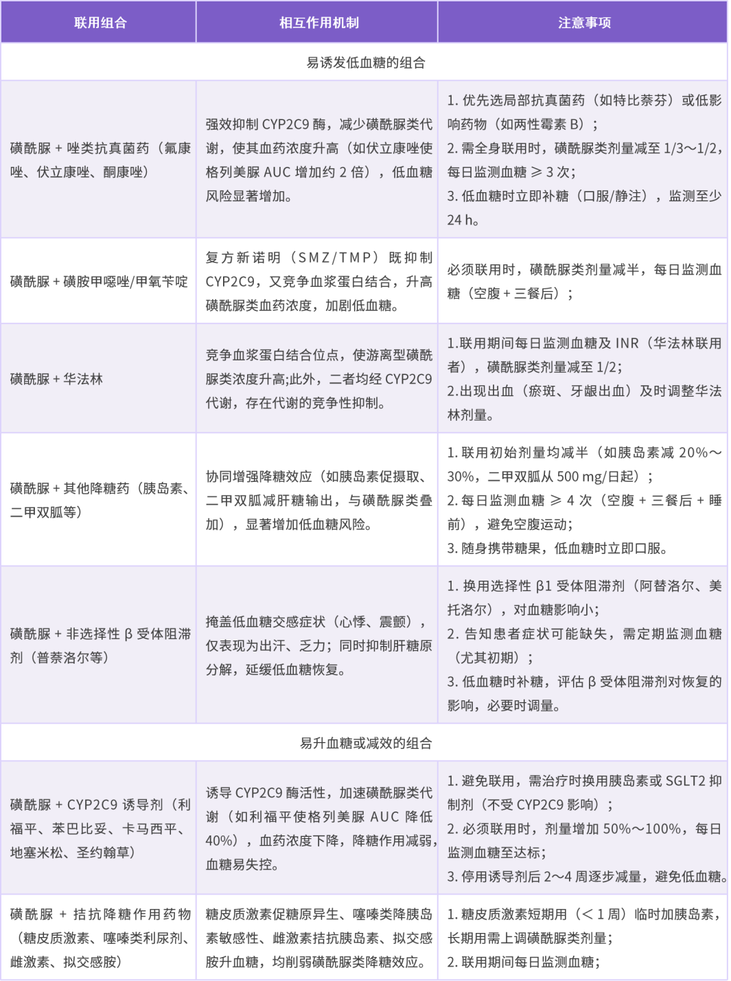 表 3 磺酰脲类的相互作用