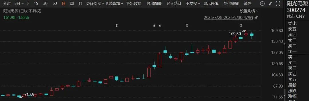 近日,阳光电源在二级市场走势相当抢眼,公司股价持续攀高,9月份累计涨幅超62%,总市值突破3300亿元。