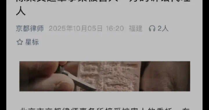10月5日,北京京都律师事务所发文称,接受被害人委托,指派张启明、戴盛赟律师为陈震驾驶劳斯莱斯逆行肇事一案中被害人的诉讼代理人。